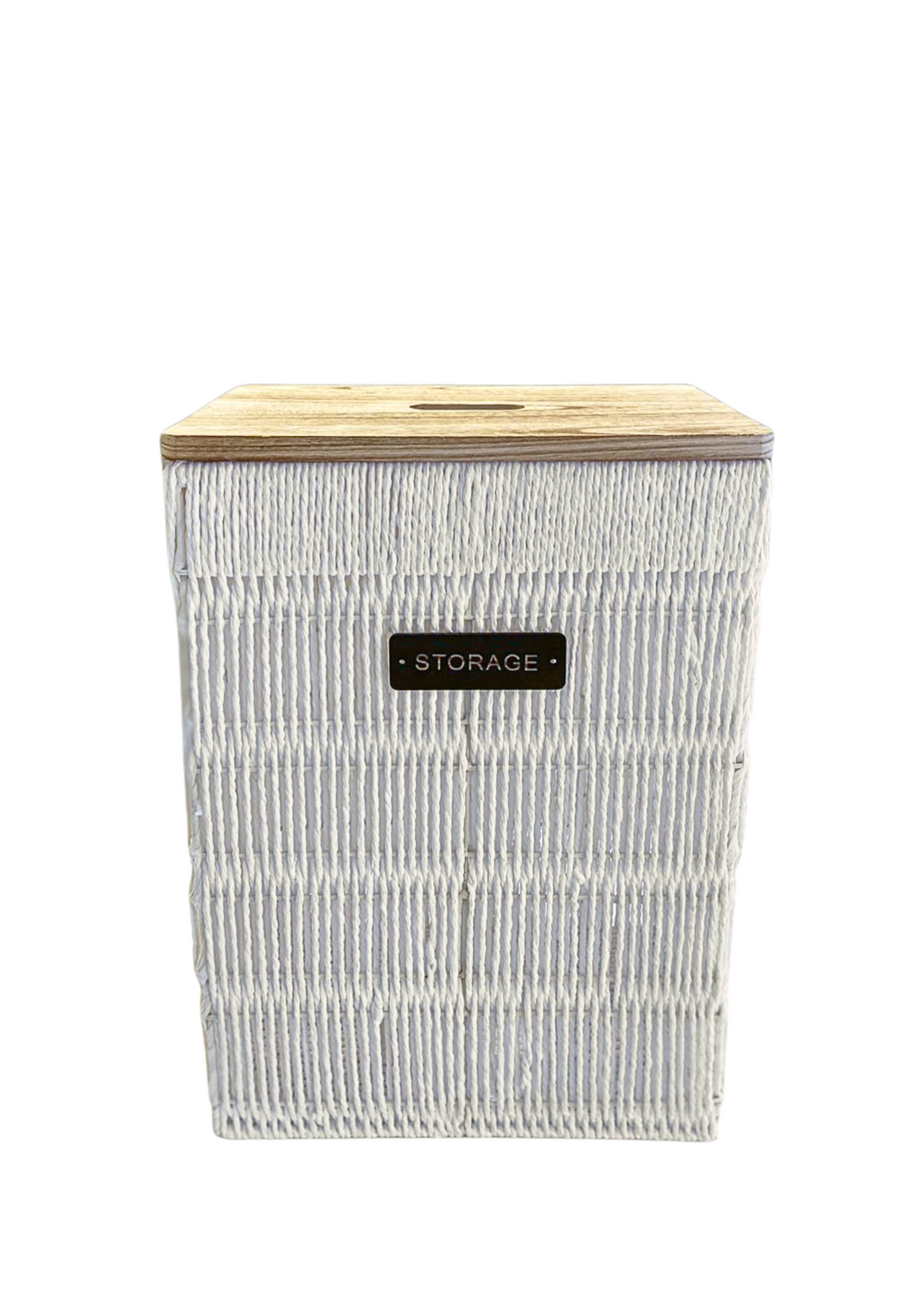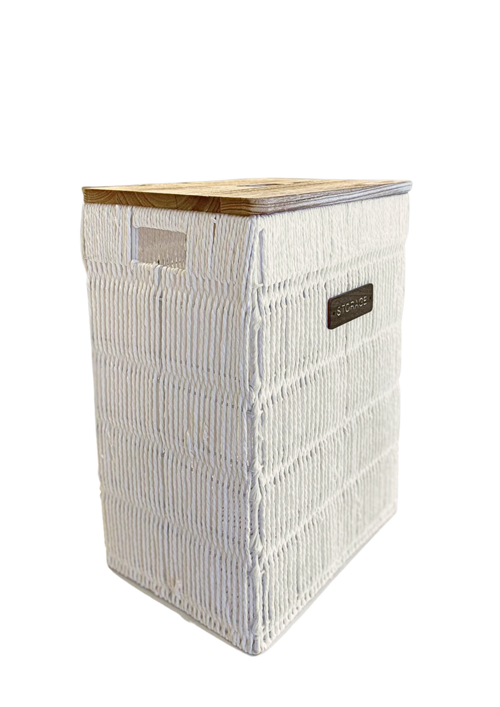 CESTO ORGANIZADOR ALTO TRAMA CRUA TAMPA MADEIRA