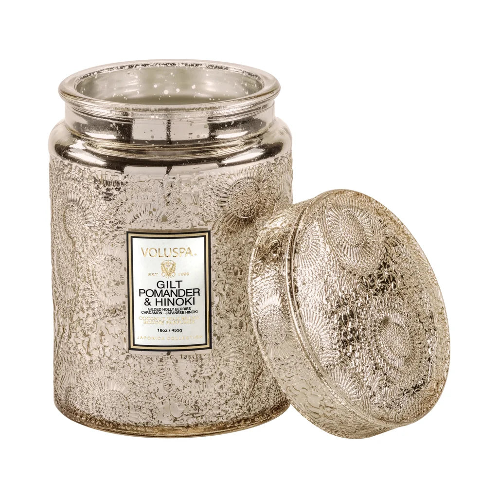 Descubra a sofisticação da Vela 100H Vidro Gilt Pomander e Hinoki, que combina notas quentes e especiadas para criar um ambiente acolhedor. Com a essência marcante do pomander dourado, bagas de azevinho, cardamomo e a madeira japonesa hinoki, essa vela proporciona uma experiência olfativa elegante e duradoura de até 100 horas. Ideal para quem busca um toque refinado e envolvente na decoração e no aroma do seu espaço.